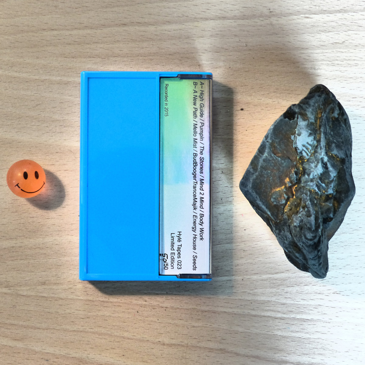 Limited edition white cassette (50 hand-numbered copies), professional duplication. C30, Chrome tape. Hand-stamped ("Hylé" logo in blue), artwork printed on 250g paper.